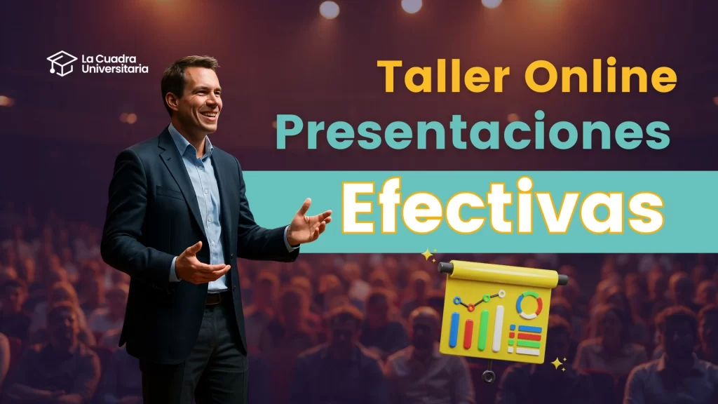 Taller Online “Presentaciones Efectivas”. Aprende a diseñar, estructurar y exponer presentaciones que capten la atención y transmitan tu mensaje con impacto. Técnicas de comunicación, uso de recursos visuales y habilidades para hablar en público de manera clara, persuasiva y profesional.